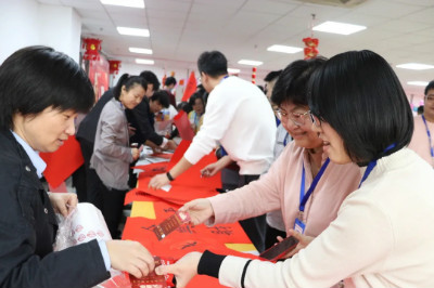 紅色的對聯(lián)、福字和熱鬧的人群將活動現(xiàn)場映襯得節(jié)日氛圍十足。飽含節(jié)日祝福的對聯(lián)和福字被員工捧在手里,一張張笑臉洋溢著節(jié)日的喜悅和對美好明天的憧憬。
