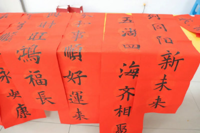 你以為只有燈謎、元宵、游戲和棋牌嗎?那你就out了!在這兒,還有咱們傳統(tǒng)文化的弘揚! 活動將年俗與書法藝術(shù)進行了融合,特邀請公司開發(fā)部的鄒學(xué)良同志為大家現(xiàn)場教學(xué)書法?;顒蝇F(xiàn)場,幾張桌子一字擺開,只見他神情專注,鋪紙、蘸墨,揮毫自如。旋即,一副副吉祥喜慶、飽含祝福的對聯(lián)和福字在他的筆下一一呈現(xiàn)。其他同事見狀也躍躍欲試,在鄒工的講解和指導(dǎo)下,很多員工也擼起了袖子過了把書法癮,把對節(jié)日的祝福寫進字里。