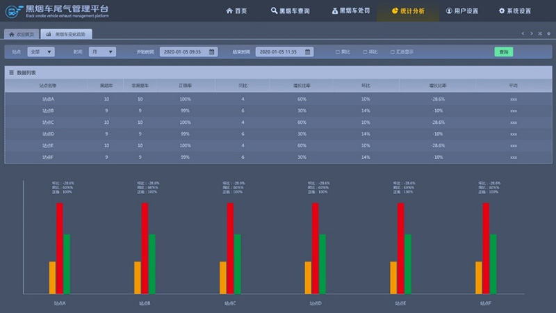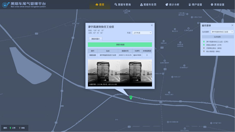我司自主研發(fā)的黑煙車智能監(jiān)控管理平臺黑煙車查詢、黑煙車處罰、黑煙車數據統(tǒng)計等多項功能于一體,通過在城區(qū)各典型地段合理布設,形成在線監(jiān)控網絡,結合網絡傳輸技術與環(huán)境監(jiān)測中心和車輛管理中心實行數據共享與結果顯示,為決策研究者及地區(qū)機動車尾氣污染控制措施指定提供科學依據,從而達到對整個城市黑煙車污染進行在線監(jiān)測的目的。