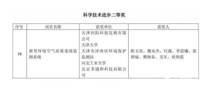 天津同陽(yáng)科技發(fā)展有限公司研發(fā)的新型環(huán)境空氣質(zhì)量連續(xù)監(jiān)測(cè)系統(tǒng)獲天津市科技進(jìn)步二等獎(jiǎng)