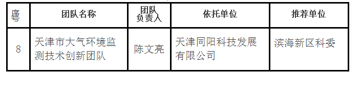 天津同陽科技發(fā)展有限公司“天津市大氣環(huán)境監(jiān)測技術創(chuàng)新團隊”成功入選。