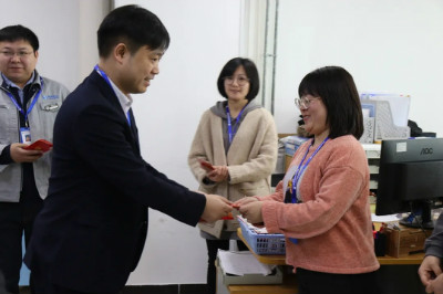 日月開新元,天地又一春。2021年2月19日(正月初八),同陽人迎來了辛丑牛年的第一個工作日。大家迅速調(diào)整狀態(tài),投入到有序的工作中,以全新的姿態(tài)迎接2021年更大的挑戰(zhàn)。在這開工大吉的日子,公司總經(jīng)理陳文亮攜管理團隊深入到各部門,為同事們逐個派發(fā) “開工利是”紅包,并為大家送去新春的祝福和濃濃的關(guān)懷,現(xiàn)場氣氛熱鬧非凡。