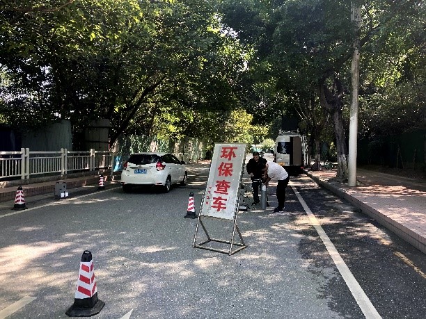 同陽(yáng)機(jī)動(dòng)車尾氣遙感監(jiān)測(cè)設(shè)備在天河區(qū)的路檢現(xiàn)場(chǎng)