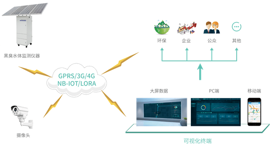 黑臭水體在線自動監(jiān)測系統(tǒng)基于物聯(lián)網(wǎng)的理念,采用信息化手段,結(jié)合GIS展示,通過建立微型水站的方式實(shí)現(xiàn)對黑臭水體水質(zhì)、環(huán)境因素等的實(shí)時監(jiān)測,通過專用的通訊系統(tǒng),將監(jiān)測數(shù)據(jù)上傳至遠(yuǎn)程的監(jiān)控中心和托管站,從而實(shí)現(xiàn)遠(yuǎn)程監(jiān)控的功能,建立長效的監(jiān)督管理機(jī)制,動態(tài)展示黑臭水體治理成果,最終達(dá)到提升人居環(huán)境質(zhì)量,改善城市生態(tài)環(huán)境的目的。
