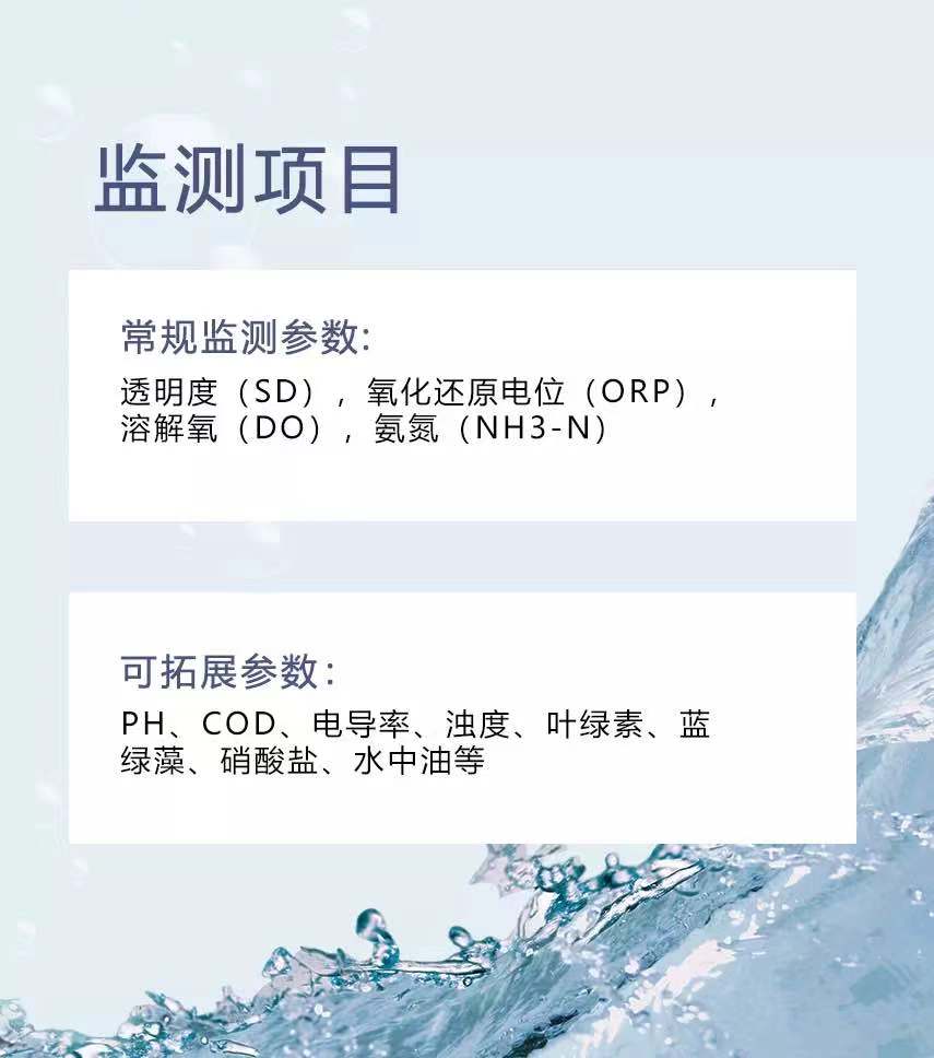 前端設(shè)備主要用于監(jiān)測黑臭水體四項(xiàng)參數(shù),監(jiān)測參數(shù)為透明度(SD)、溶解氧(DO)、氧化還原電位(ORP)、氨氮(NH3-N)、可根據(jù)現(xiàn)場監(jiān)測參數(shù)需求擴(kuò)展監(jiān)測電極,所有電極均采用耐腐蝕殼體自動清潔光學(xué)部件,維護(hù)量低,穩(wěn)定性高適用于各種復(fù)雜工況環(huán)境。