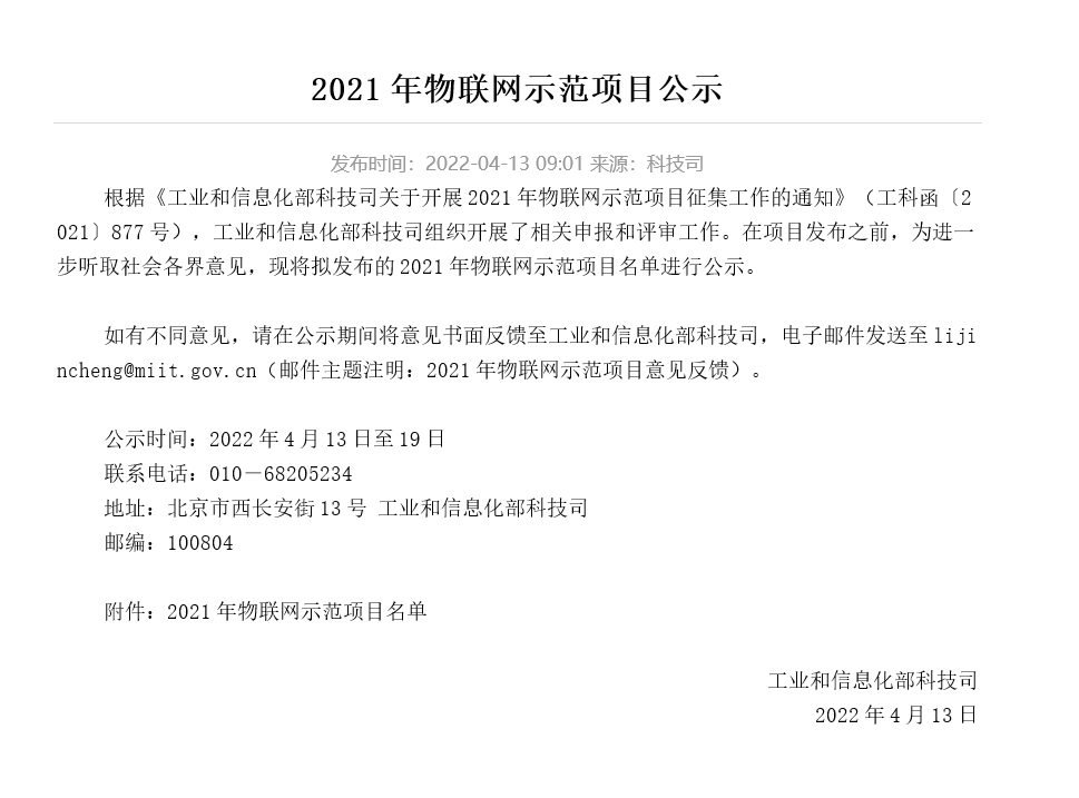 據(jù)悉,本次評選活動旨在貫徹落實《中華人民共和國國民經濟和社會發(fā)展第十四個五年計劃和2035年遠景目標綱要》和《物聯(lián)網新型基礎設施建設三年行動計劃(2021-2023年)》充分發(fā)揮物聯(lián)網新型基礎設施在推動數(shù)字經濟發(fā)展、賦能傳統(tǒng)產業(yè)數(shù)字化轉型升級方面的作用。